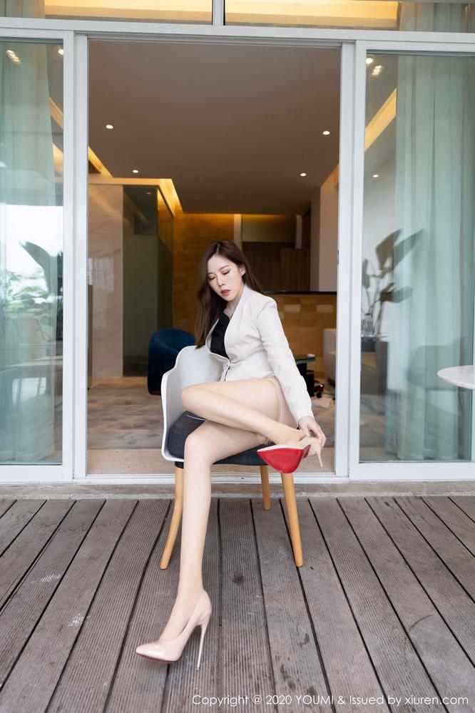 YouMi尤蜜荟 473期 白西装黑衬衫与朦胧丝袜的职场装扮 白茹雪Abby